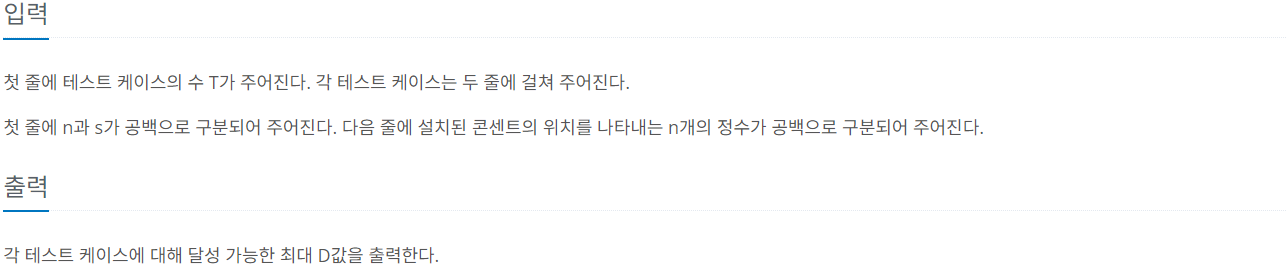 1. n과 s를 입력받고, vector<int> arr에 콘센트 좌표를 저장합니다.