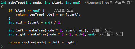 이진트리이므로 항상 범위를 반으로 나누면 됩니다. 즉 (현재 노드, 시작 범위, 끝 범위)의 형태로 반복해서 재귀 호출을 해주고 마지막에 시작 범위와 끝 범위가 일치할 때가 리프 노드이므로 값을 넣어주고 그 값을 return 해주면 됩니다.