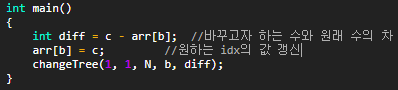 특정 index의 값을 바꿀 때도 분기를 나누어서 구해주면 됩니다. 바꾸고자 하는 index가 현재 범위에 포함되어 있는지 없는지만 체크해주면 쉽게 구현할 수 있습니다.
