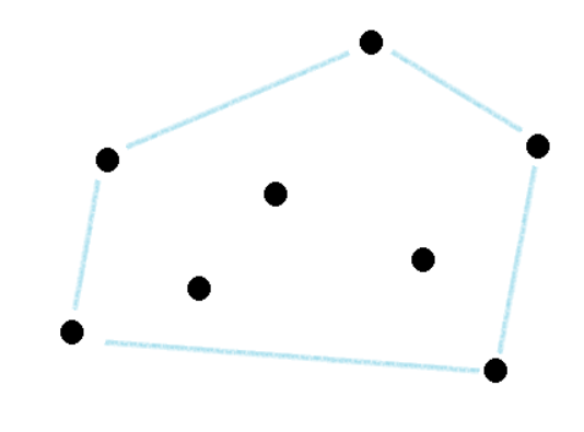 위의 그림을 컨벡스 헐 알고리즘을 통해 선을 그으면 다음과 같이 표시할 수 있습니다.