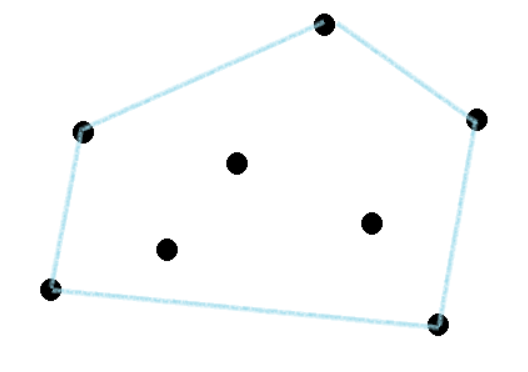 위를 볼록 껍질이라고 하고, 점 5개로 이루어져있습니다.