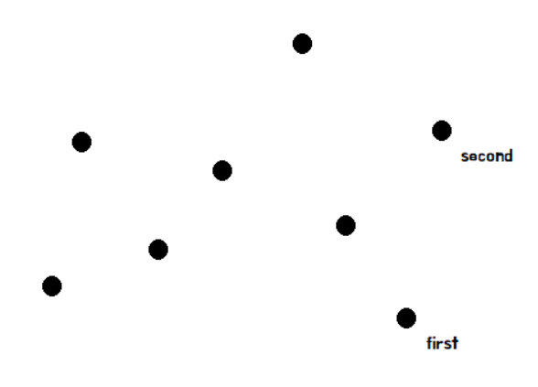 1. 우선 가장 아래에 있는 점들 중 가장 왼쪽에 있는 점을 기준점으로 잡습니다.