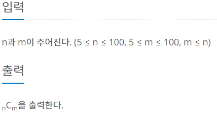 n과 m이 주어진다. (5 ≤ n ≤ 100, 5 ≤ m ≤ 100, m ≤ n)