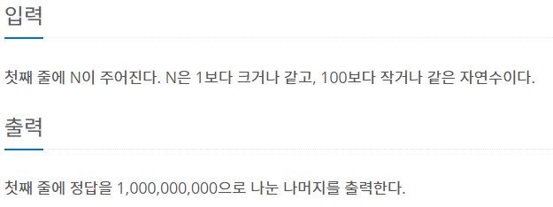 첫째 줄에 정답을 1,000,000,000으로 나눈 나머지를 출력한다.